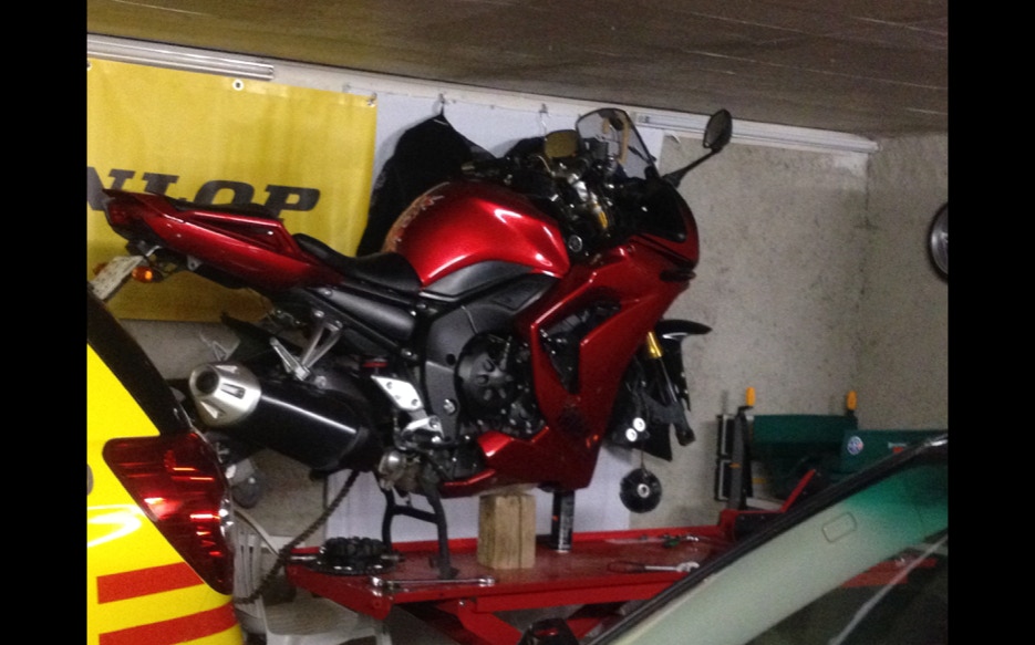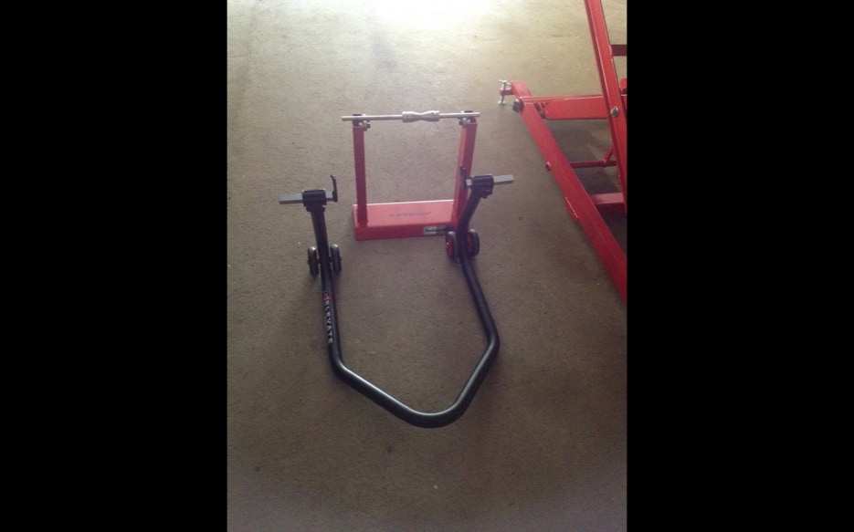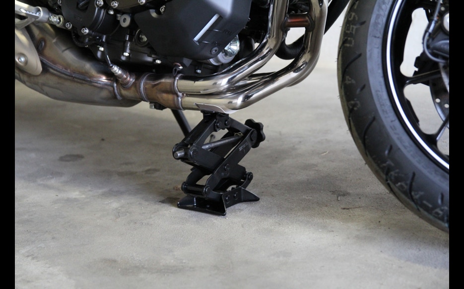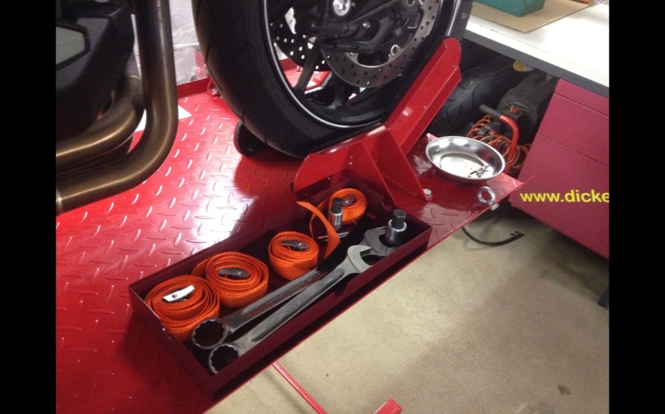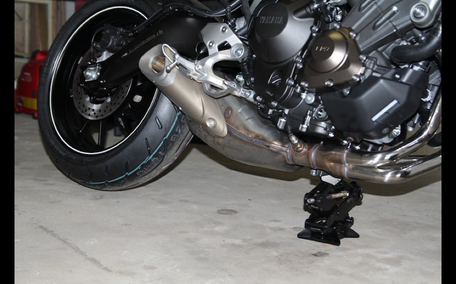 Eine Motorradhebebühne hilft mir auf angenehmer Höhe Wartung - und Reinigungsarbeiten zu erledigen. Auch wenn mal der Auspuff wieder gereinigt werden muss ist so eine Hebebühne toll.
