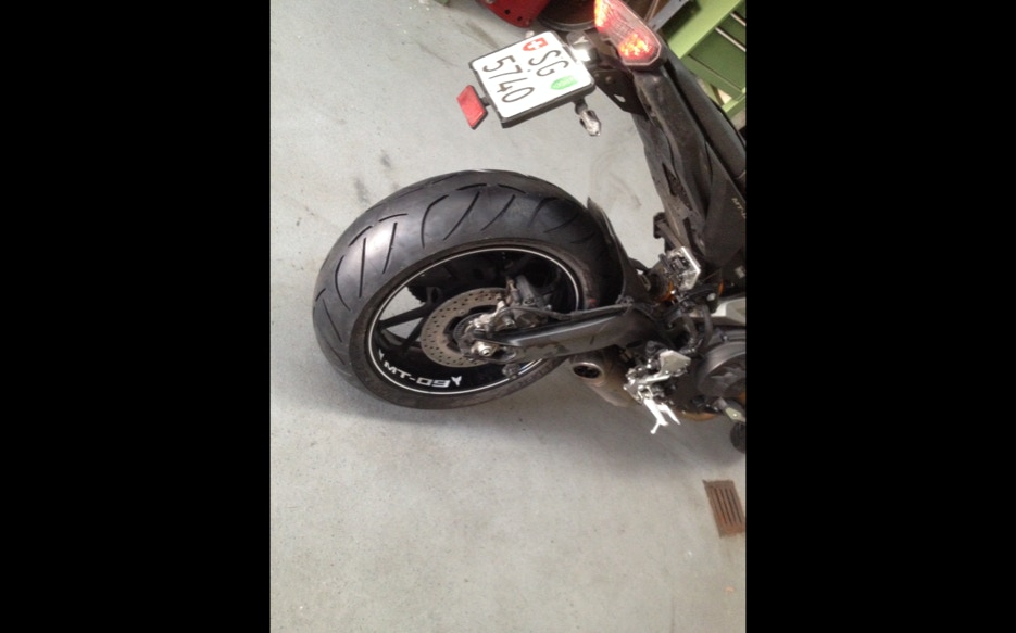 Reifen sind wohl das Wichtigste, das dich auf der Strasse hält. Als Standardreifen war beim Kauf der MT-09 ein Bridgestone S20 montiert. Da ich die Maschine im Februar zugelassen hatte und die Temperaturen noch tief waren, hatte ich bedenken für ordentlichen Grip. Es stellte sich aber heraus, dass der S20 ganz gut mit den tiefen Temperaturen zurecht kam. Die Lebensdauer war aber auch dementsprechend gering. Nach ca. 2000 Km war der hintere Reifen verschlissen und der vordere an der unteren Grenze. Als Folgereifen war mir der Dunlop Roadsmart 2 sympathisch. Diesen Reifen hatte ich auf meiner Fazer schon oft montiert. Erst als ich im Mt-09 Forum vom Metzeler M7RR hörte merkte ich den Unterschied, welcher sich in der Laufkultur positiv bemerkbar machte. Aber auch der Metzeler hat eine begrenzte Lebensdauer und hält auch nur ca. 3000- 3500 km. Im Frühjahr 2016 brachte Dunlop den Sportmax Roadsmart 3 auf den Markt, welcher sehr gute Testergebnisse lieferte. Nun habe ich diesen montiert und mit nach Sardinien und Korsika zum kurvenkratzen mitgenommen und bin sehr positiv überrascht. So wohl vom Grip her, als auch von der Lebensdauer. Er hat nun über 3000 km auf der Karkasse und das Profil ist noch bei ca. 50 Prozent. Zum Glück habe ich die Möglichkeit meine Reifen selbst zu wechseln und auszuwuchten. Das mache ich jeweils in meiner Werkstatt wo ich die Räder ausbaue und an meinem Arbeitsort, wo mir eine Pneumontiermaschine zur Verfügung steht.